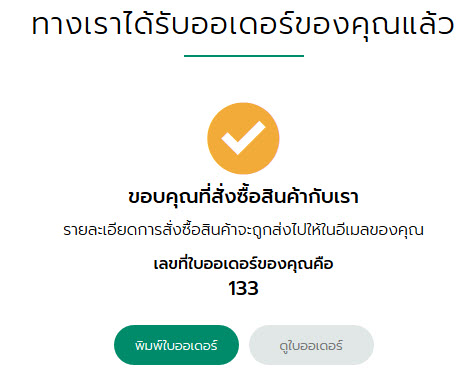 หมายเหตุ ระบบจะมีการส่งอีเมลสรุปข้อมูลการสั่งซื้อไปให้ท่านและร้านค้า เพื่อให้ทางร้านรับทราบออเดอร์และดำเนินการจัดส่งสินค้าต่อไป
